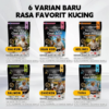 Kombinasi Ikan Cod, Tuna, dan Telur Ikan menciptakan rasa gurih alami (umami) yang sangat disukai kucing, memenuhi insting alami mereka sebagai pemakan ikan.