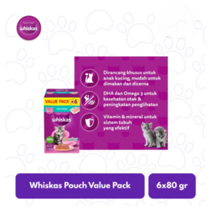 Whiskas Pouch VALUE PACK Junior Tuna Paket Hemat isi 6 x 80gr Sachet Makanan Basah