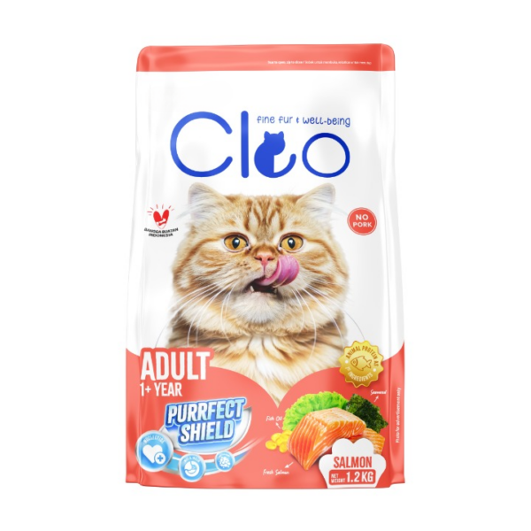 Cleo Salmon untuk kucing dewasa dengan nutrisi lengkap dan seimbang. Dilengkapi dengan aroma serta rasa lezat dari ikan salmon yang dapat membuat kucing kesayangan Anda lahap makan. Cleo salmon sangat mudah dicerna dengan kandungan probiotik yang baik untuk imunitas tubuh.