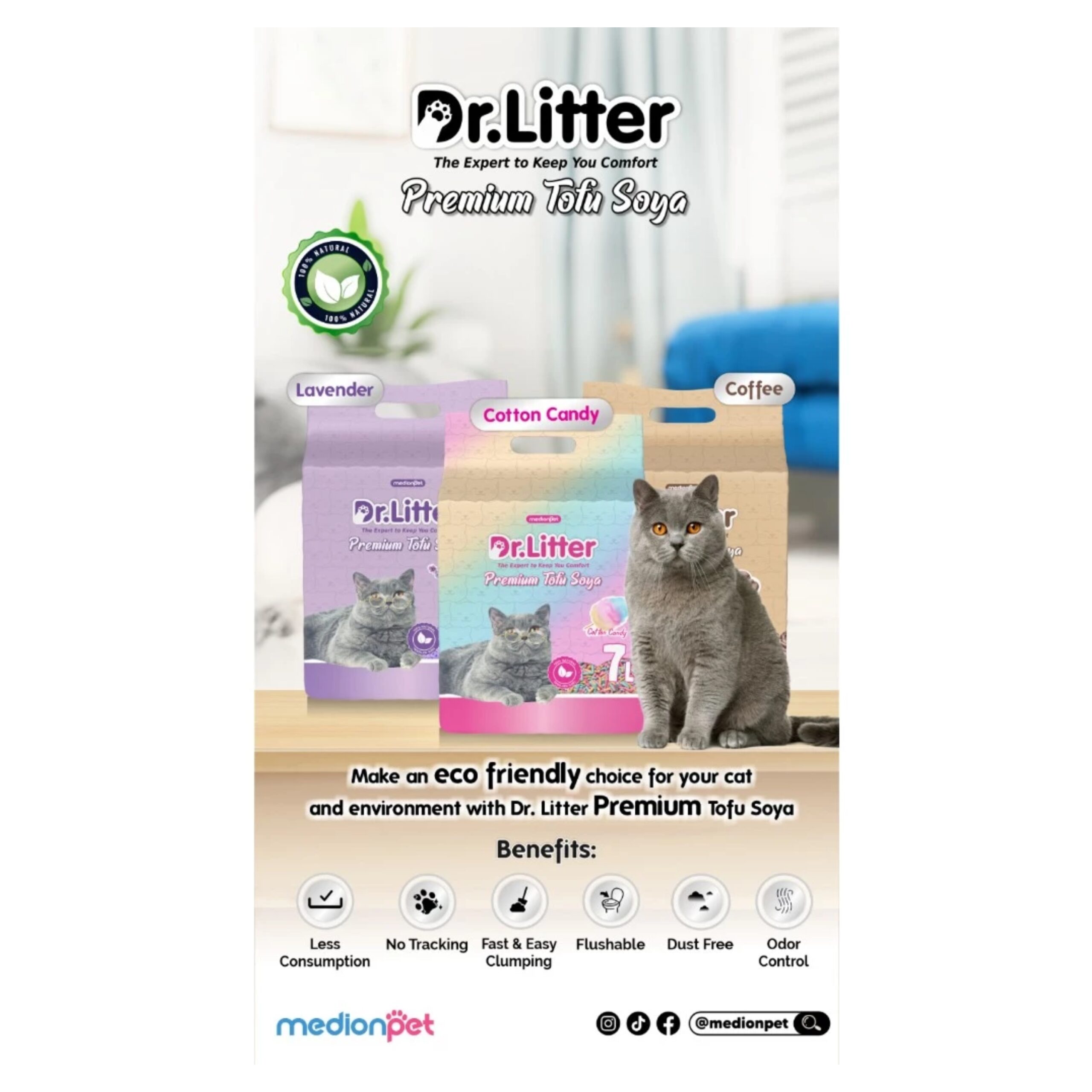 Dr. Litter Tofu hadir sebagai solusi modern untuk kebutuhan sanitasi kucing Anda. Terbuat dari serat kedelai alami (tofu), pasir ini dirancang untuk memberikan daya serap tinggi sekaligus menjaga kebersihan udara di dalam rumah Anda tanpa debu yang mengganggu.