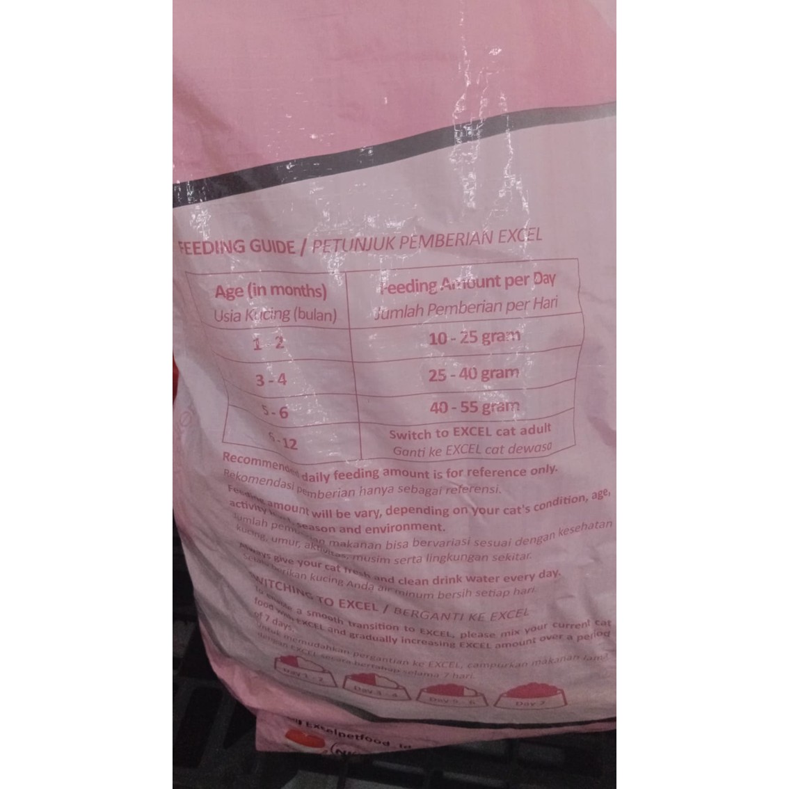 Usia 7-12 bulan 50-60 gram atau ganti ke Excel Cat Adult