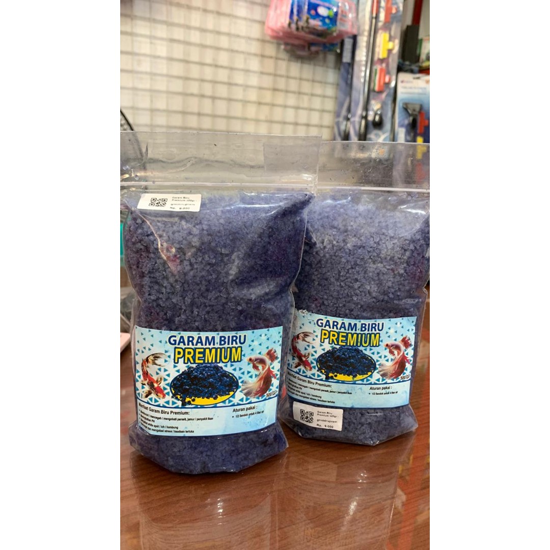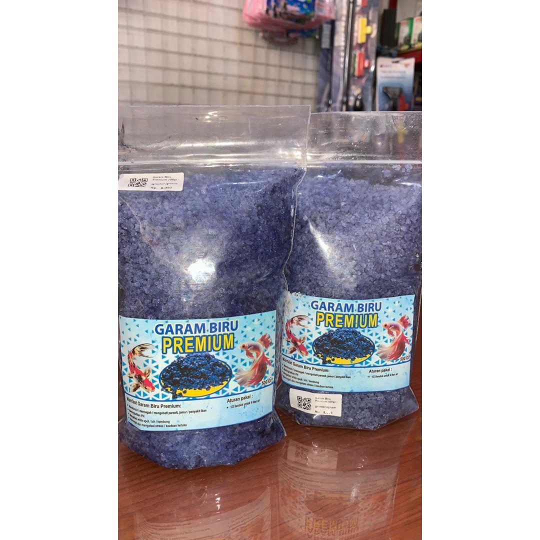 Garam Biru Premium adalah garam ikan yang telah diperkaya dengan Methylene Blue dosis tepat untuk membantu mencegah dan mengobati berbagai penyakit yang disebabkan oleh jamur, bakteri, dan parasit. Sangat efektif untuk menjaga kondisi air tetap ideal bagi ikan hias seperti Cupang, Koi, Mas Koki, dan jenis ikan hias lainnya.