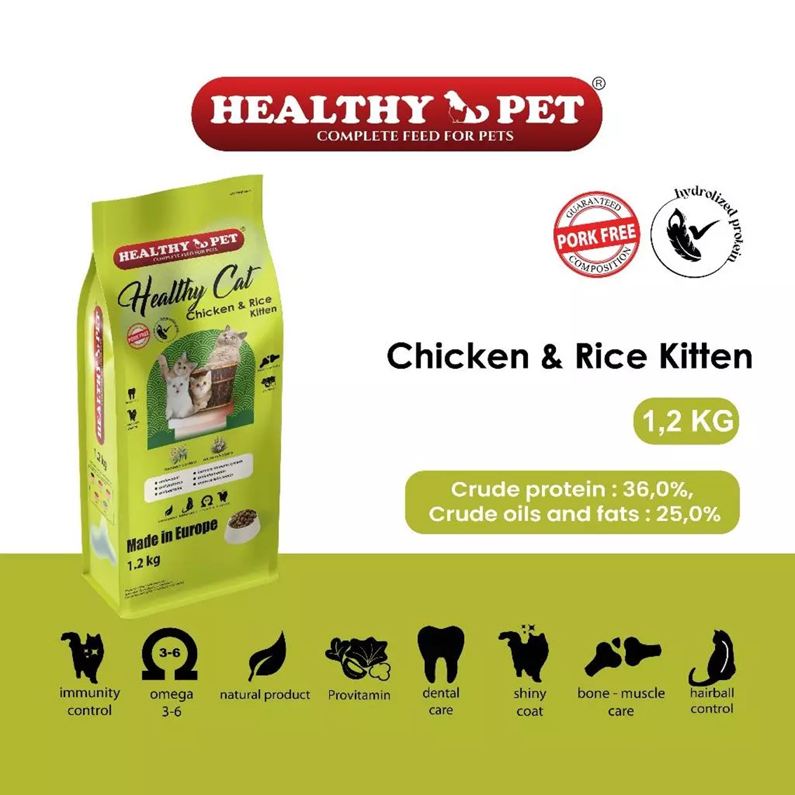 Healthy Cat Chicken & Rice Kitten 1.2kg – Nutrisi Pertumbuhan Emas Anak Kucing