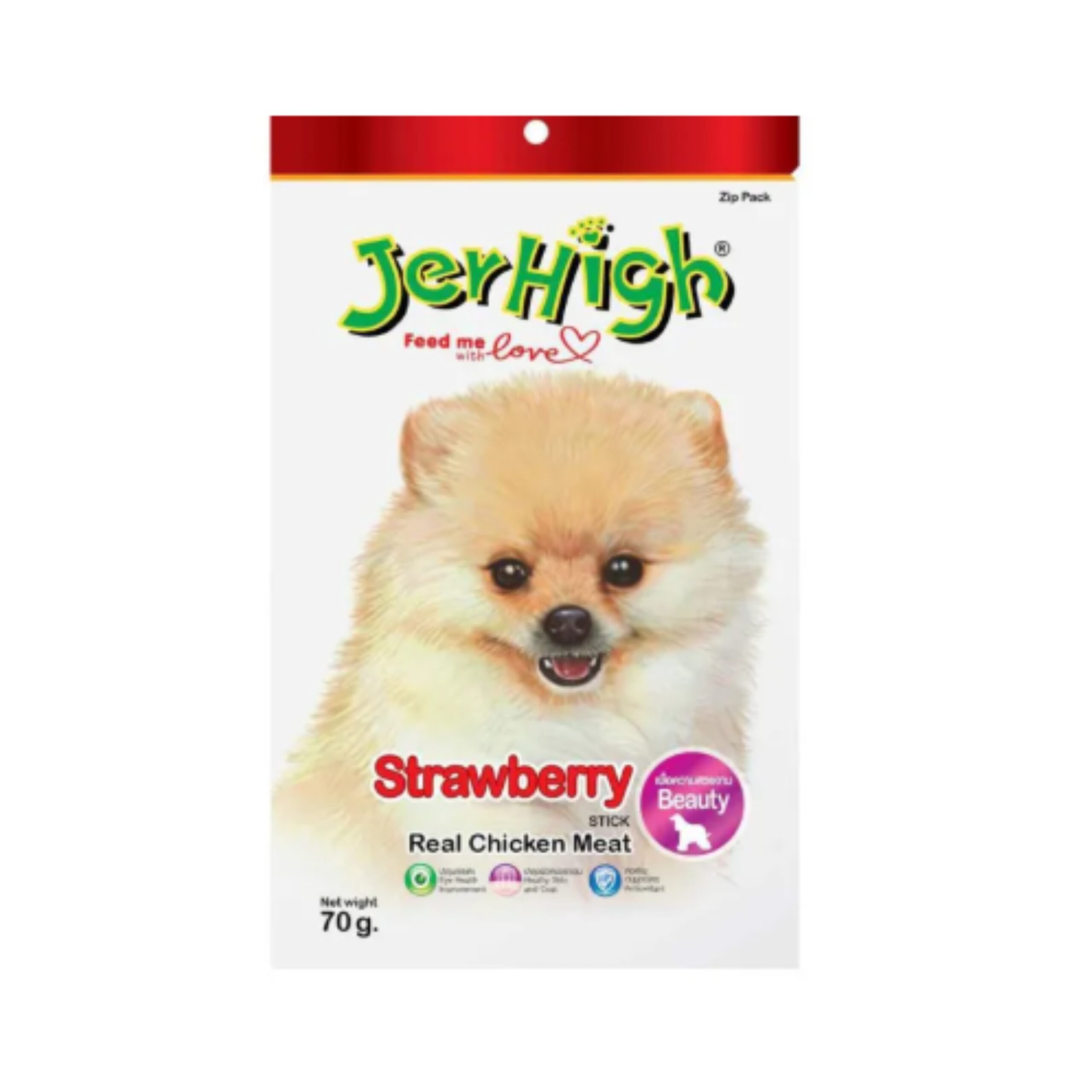 Jerhigh merupakan snack atau camilan favorit kesukaan anjing Anda. Snack ini terbuat dari daging ayam dengan berbagai macam varian rasa. Jerhigh cocok untuk camilan anjing Anda maupun sebagai treat selama Anda melatih anjing. Jerhigh mengandung protein, lemak, moisture, vitamin E dan nutrisi lain yang bagus untuk kesehatan anjing Anda.
