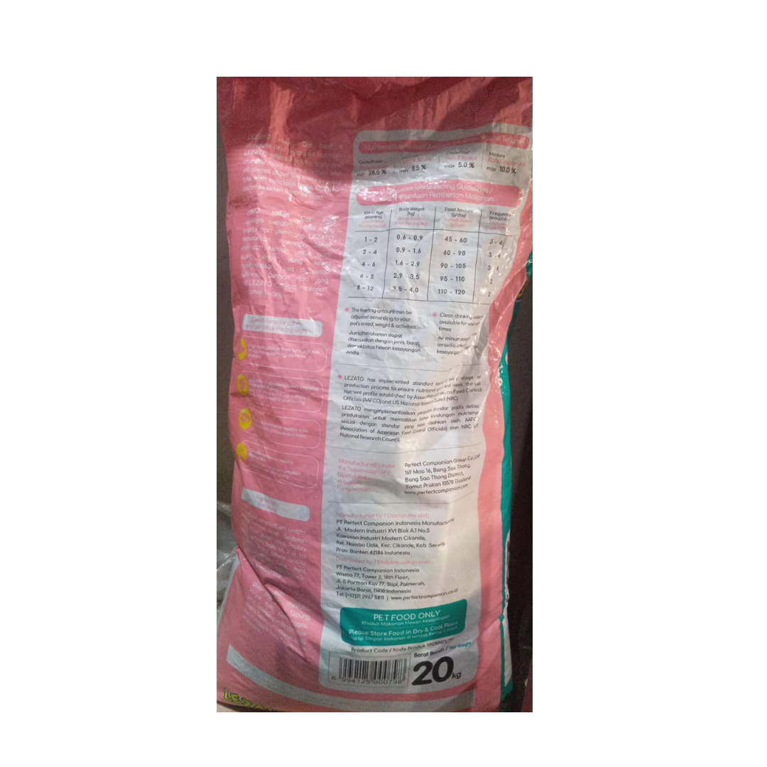 Lezato Kitten adalah makanan kucing yang diperkaya nutrisi yang lengkap dan seimbang. Selain nutrisi yang seimbang, lezato Kitten juga termasuk makanan sehat, enak dan renyah untuk Anak kucing kamu yang mendambakan rasa disetiap gigitannya.