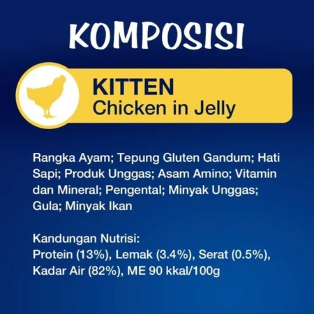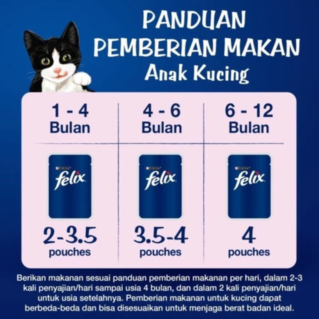 Berikan awal terbaik untuk pertumbuhan anak kucing Anda dengan Felix Kitten Chicken in Jelly. Nutrisi lengkap dan seimbang yang dirancang oleh para ahli untuk memenuhi kebutuhan energi anak kucing yang tinggi.