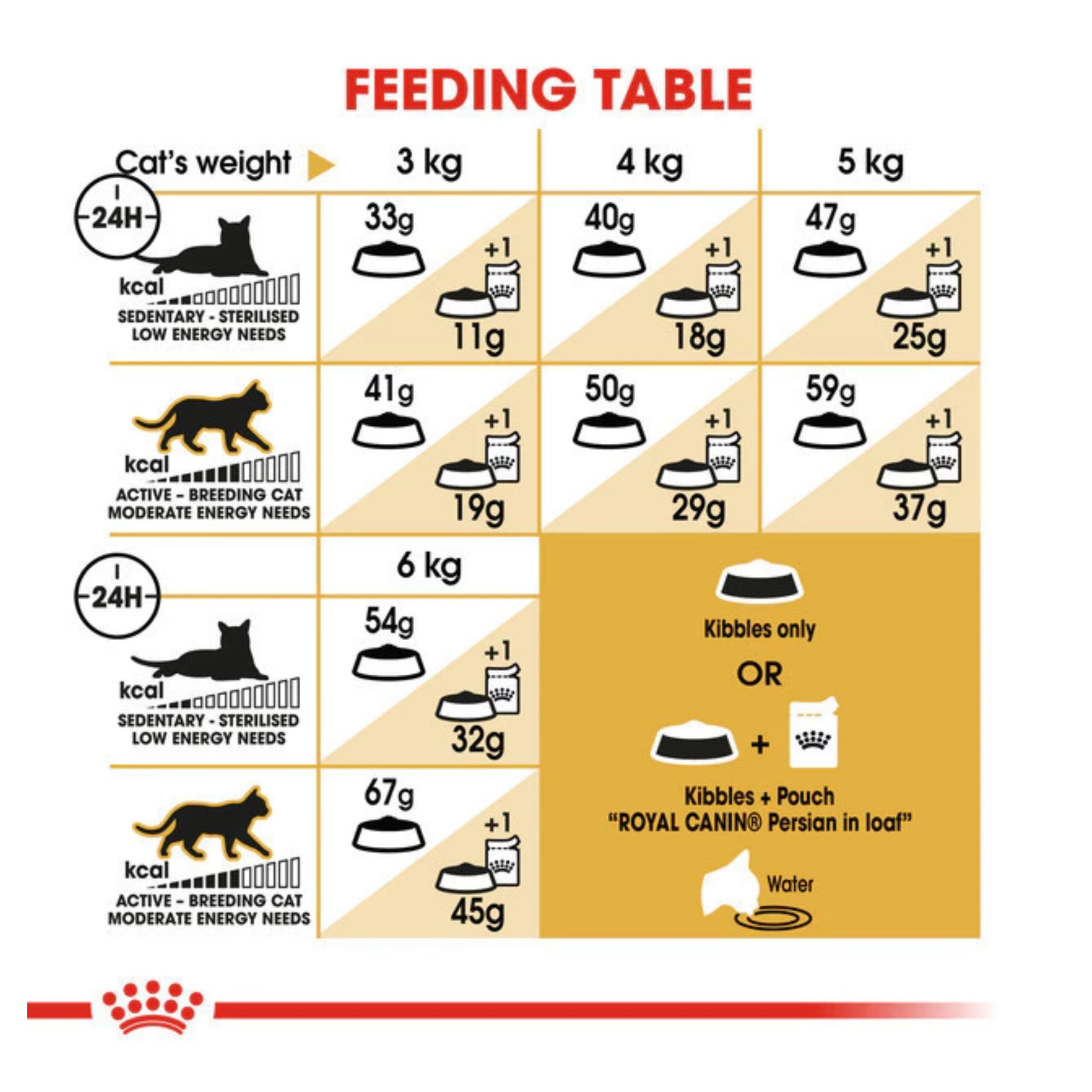 Royal canin adult persian (RC 30) secara khusus memformulasikan untuk menjaga dan merawat kesehatan kucing, mengurangi terjadinya hairballs dengan kandungan serat larut dan tidak larut alami didalamnya. Kucing Persia terkenal dengan kucing yang memiliki sistem pencernaan yang sensitif, oleh karena itu kucing Persia membutuhkan nutrisi khusus untuk merangsang bakteri yang menguntungkan, memblokir bakteri yang berbahaya dalam saluran pencernaan. dan membuat kulit dan bulu menjadi sehat dan berkilau.