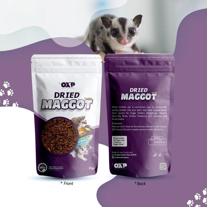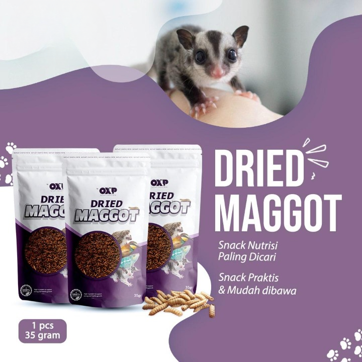 OXP Maggot BSF Kering 35gr – Protein Booster Alami Sugar Glider, Reptil & Ikan