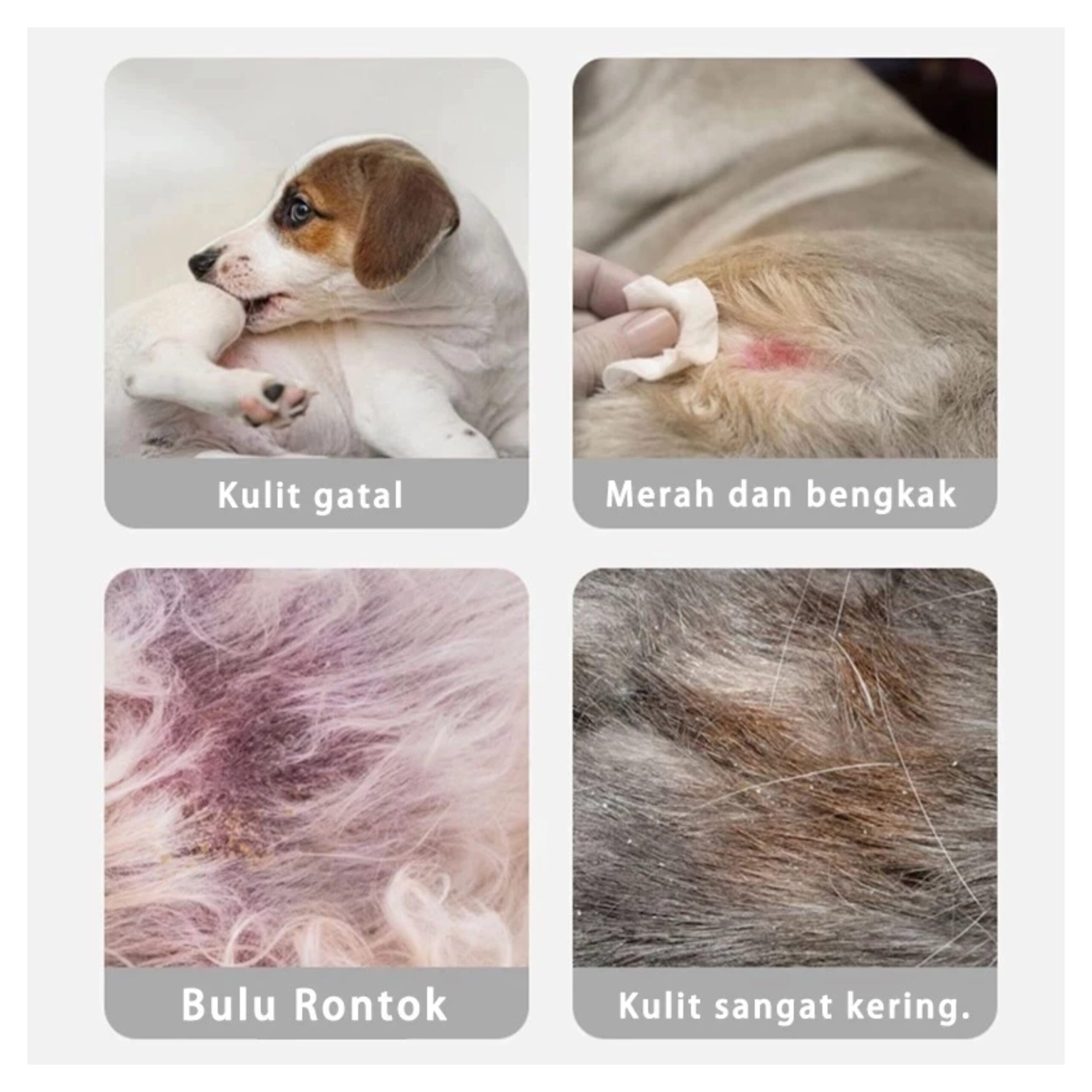 3. Diamkan (Waktu Kontak): Biarkan busa menempel pada kulit selama 10 menit penuh. Pastikan hewan diawasi agar tidak menjilati sampo.