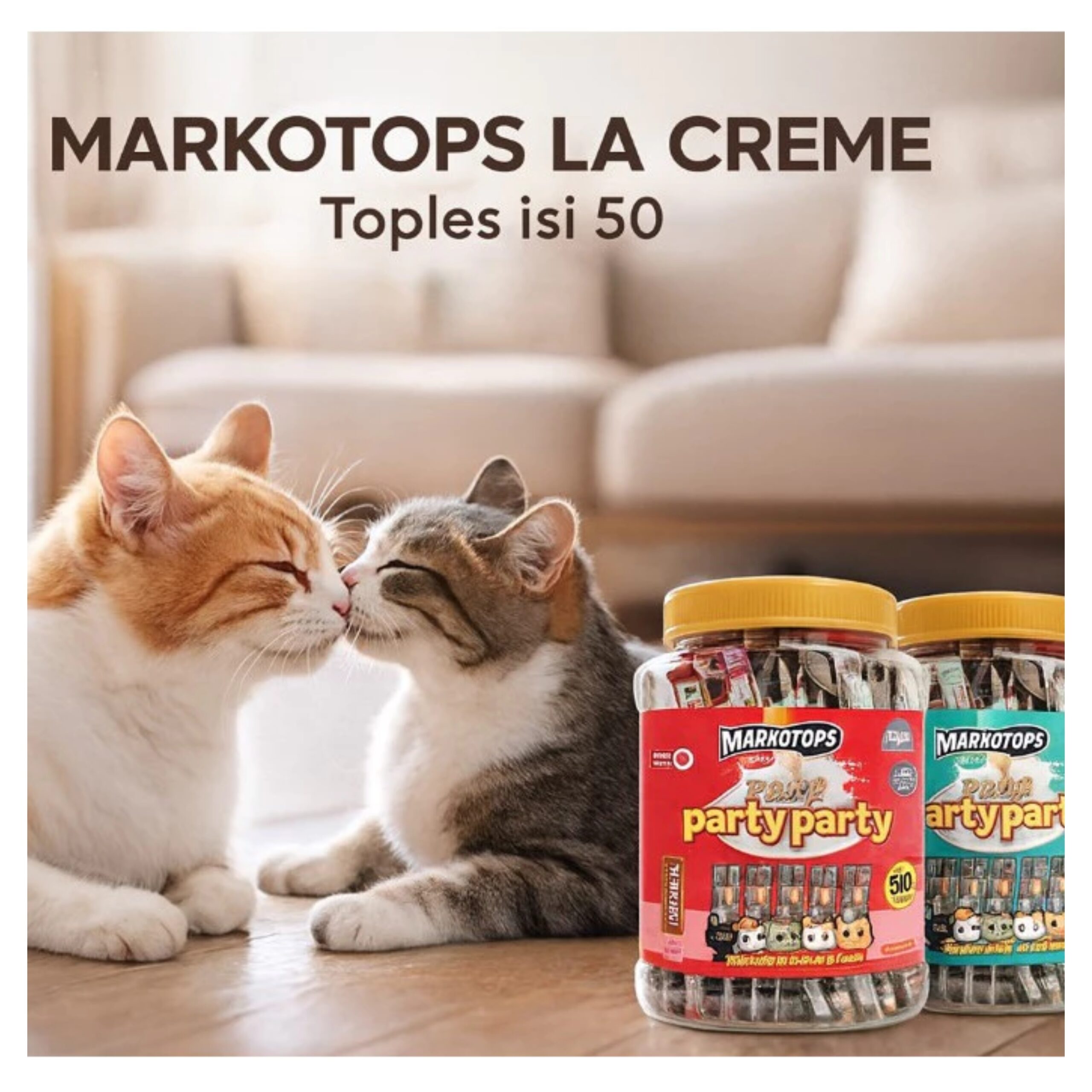Manjakan kucing Anda dengan Markotops La Crème, snack liquid premium yang memiliki tekstur super lembut dan aroma yang sangat menggoda. Dikemas dalam format Toples Party Pack isi 50 sachet, produk ini adalah pilihan paling hemat dan praktis untuk stok camilan anabul di rumah.