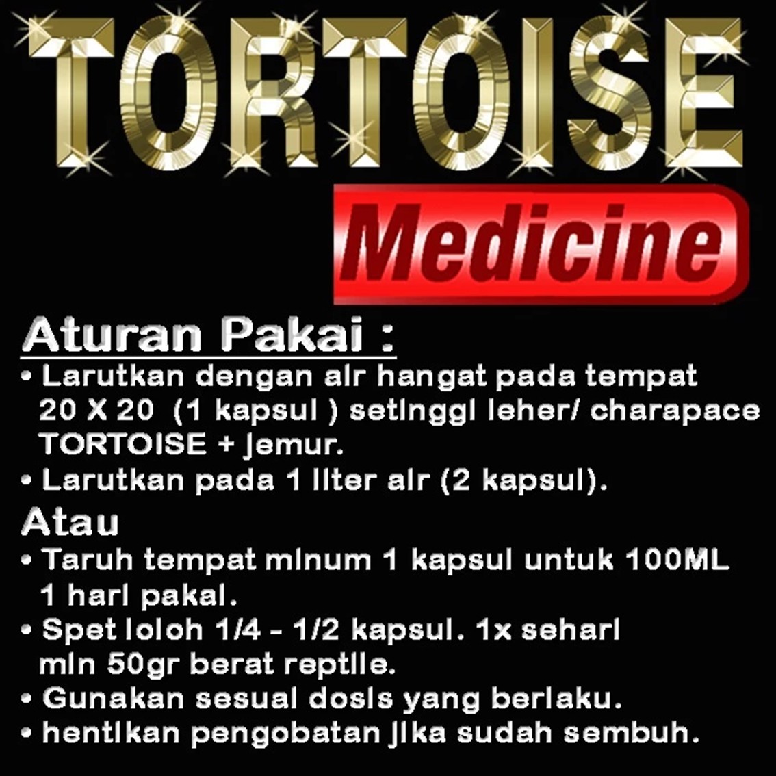Jangan biarkan Tortoise kesayangan Anda sakit terlalu lama. Sedia Tortoise Medicine sekarang juga!