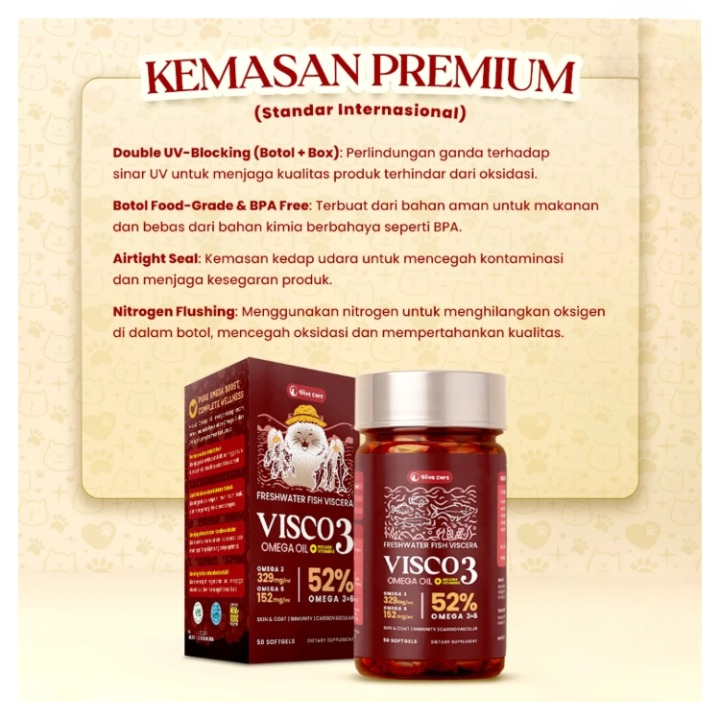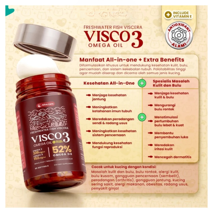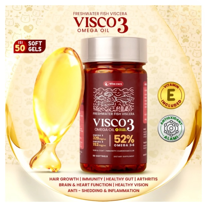 Omega Fish Oil murni dan alami, tinggi Omega 3 dan Omega 6 untuk kebutuhan asam lemak esensial kucing kamu