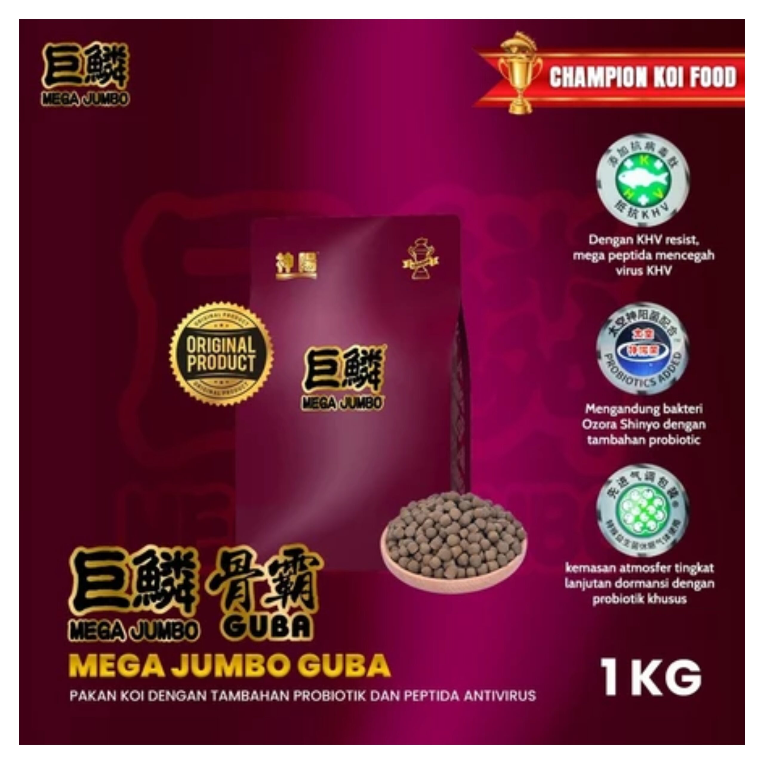 – Harga tertera untuk 1 produk Mega Jumbo Guba 1Kg M / L sesuai varian yang dipilih Ketika pemesanan.