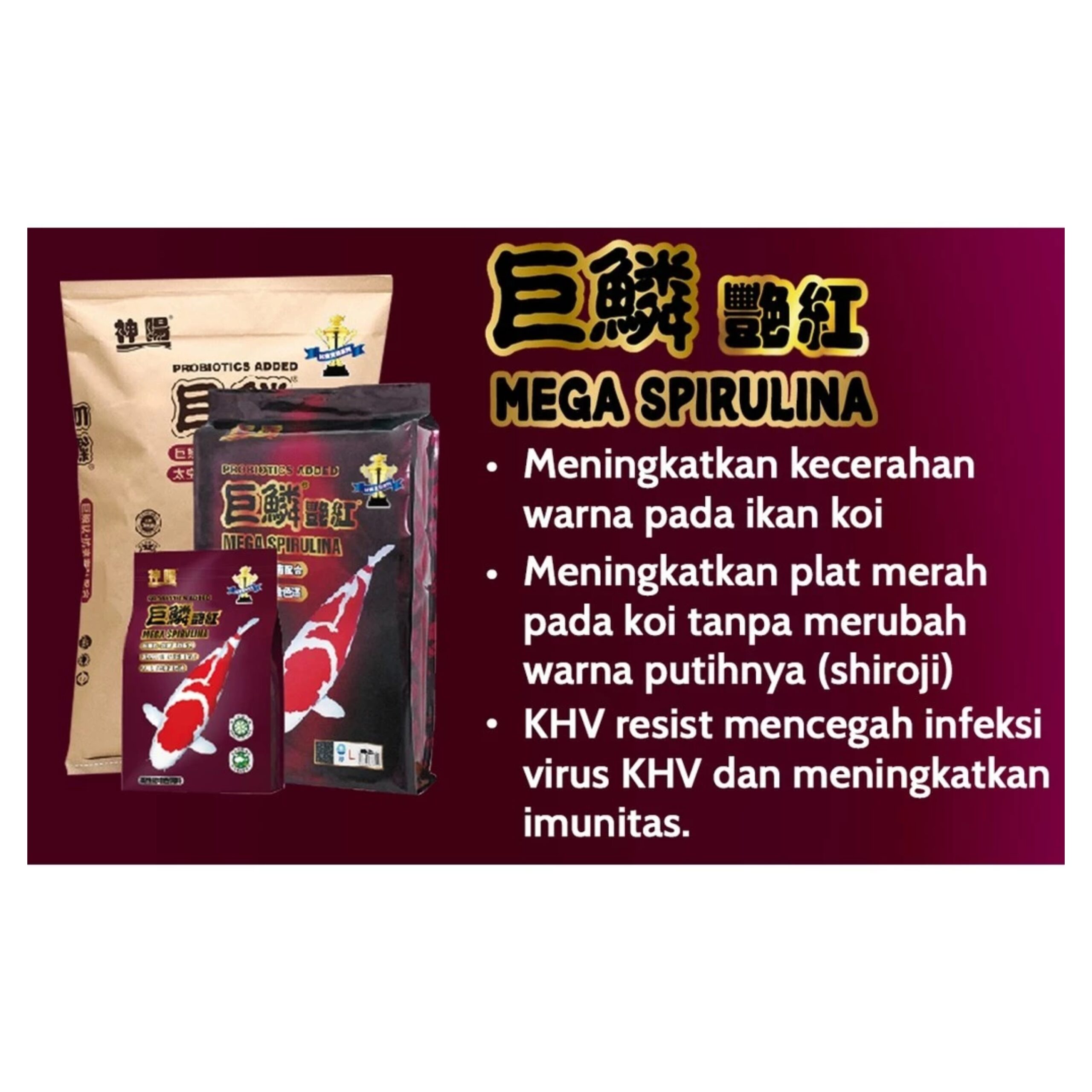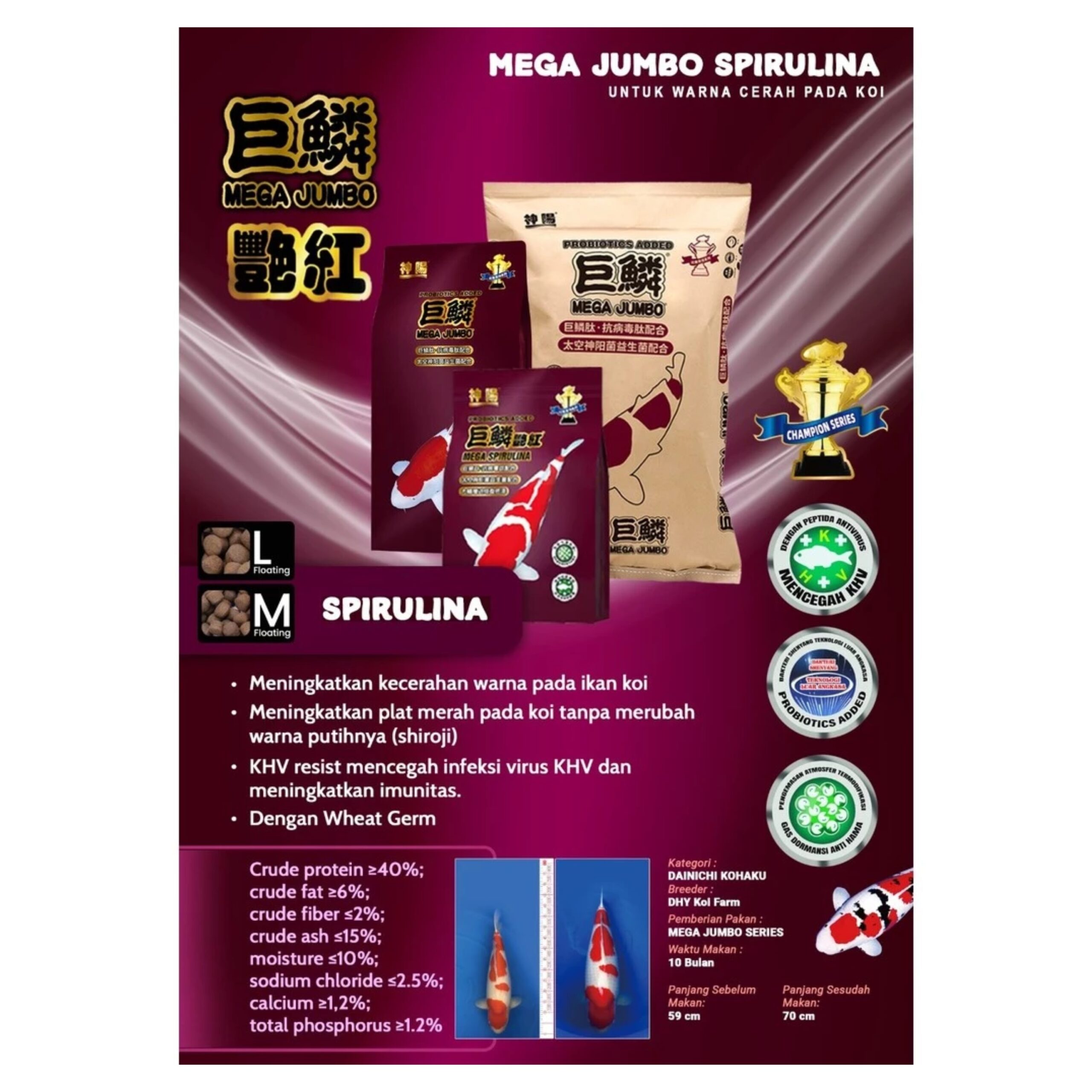 Pakan Mega Jumbo Spirulina 1kg Size M L Makanan Pelet Ikan Koi Warna (Size Medium (M))