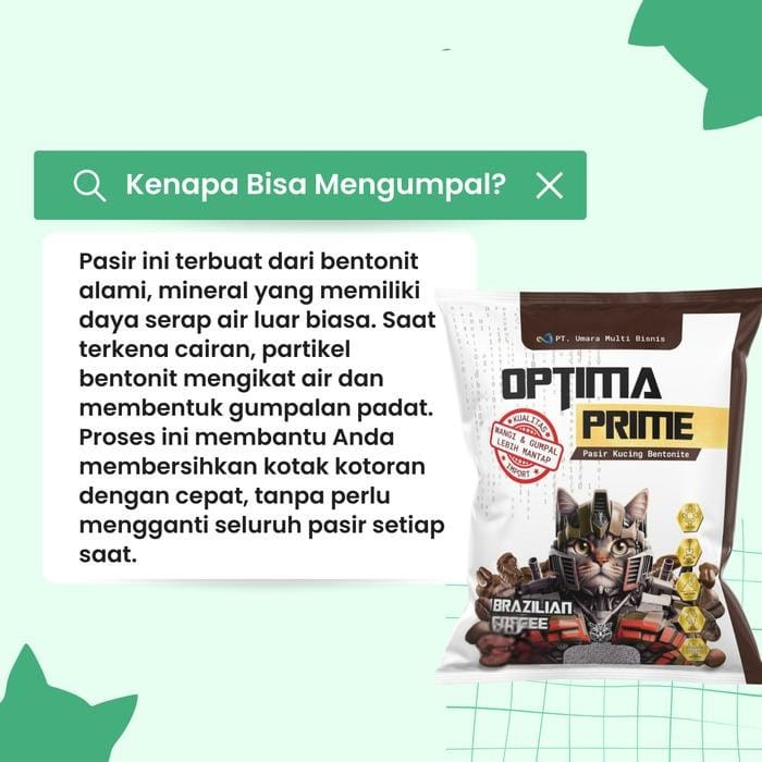 Pasir Optima Prime cocok digunakan oleh berbagai jenis kucing, terutama bagi pemilik yang menginginkan pasir kucing yang mudah dibersihkan dan efektif dalam menangani bau.