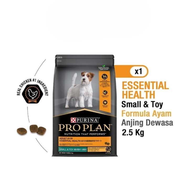 Pro Plan Adult Essential Health Small & Mini dengan rasa ayam merupakan makanan anjing yang lengkap dan seimbang untuk anjing dewasa berukuran kecil dan mini dengan berat badan lebih kurang dari 10 kg. Merupakan kombinasi dari nutrisi terbaik yang secara spesifik disesuaikan dengan ukuran anjing yang berbeda-beda untuk mendukung kebutuhan spesifik mereka, dan menjaga kondisi optimal anjing.