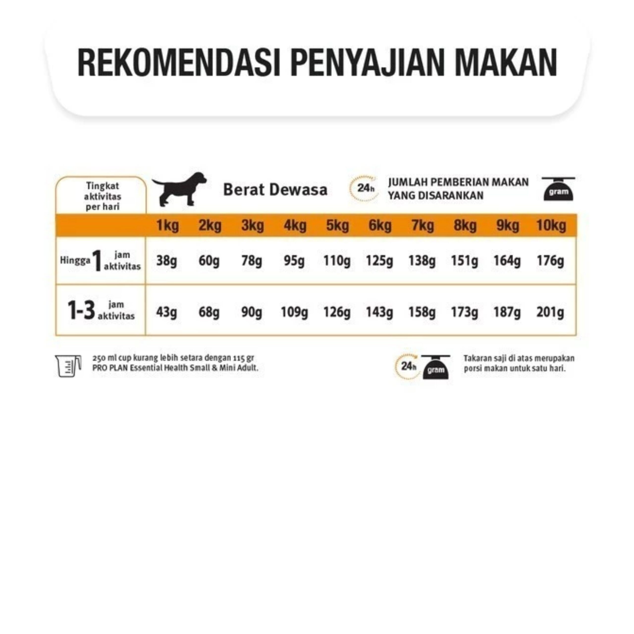 – Untuk kesehatan jangka panjang dan postur tubuh ideal, berikan sesuai dengan takaran penyajian dan Panduan Kondisi Tubuh Ideal.