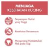 Salmon & bahan olahan tuna, tepung gluten jagung, beras, jagung, bahan olahan unggas, bubuk olahan ayam, tepung gluten gandum, minyak unggas, bubuk olahan ayam, gandum, kedelai kering, vitamin (lengkap), Mineral (lengkap), asam amino (metionin dan taurin), inulin, pewarna karamel, ragi (sumber beta-glukan).