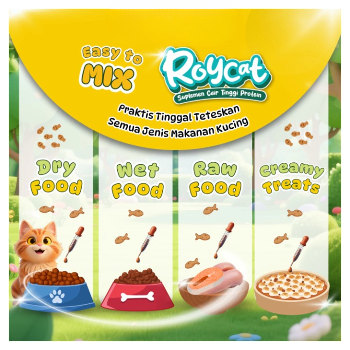 Roycat Suplemen Cair Tinggi Protein – Solusi Kucing Gemuk & Sehat!