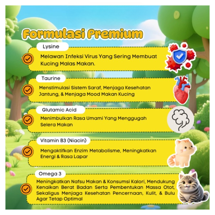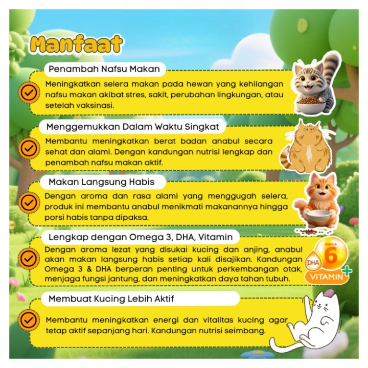 – Weight Gain Booster: Meningkatkan nafsu makan secara signifikan dan membantu menaikkan berat badan.