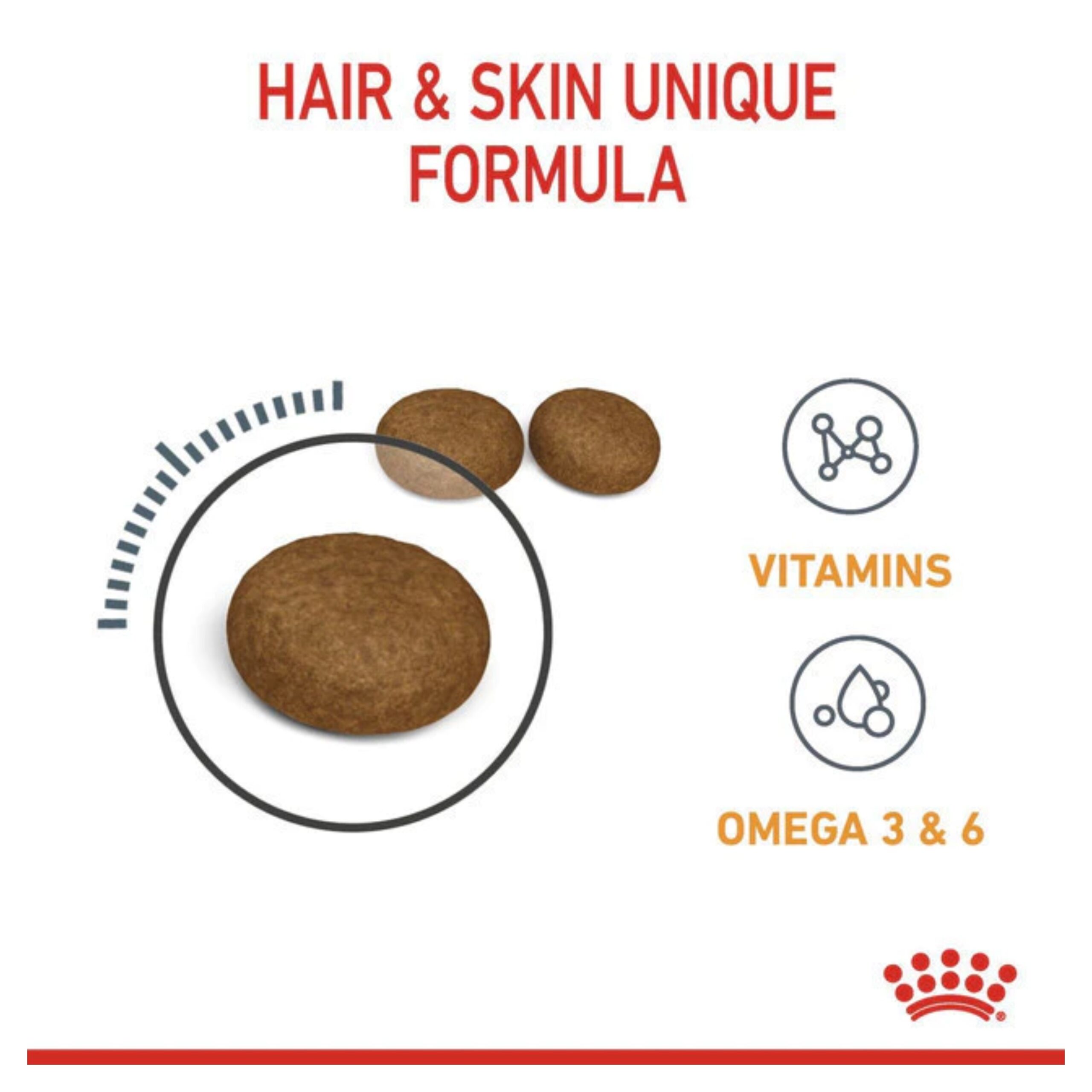 Royal Canin Hair and Skin (RC 33) merupakan makanan kering yang diformulasikan khusu untuk kucing dewasa yang berguna untuk mengembalikan dan menjaga bulu kucing bagus kembali setelah sakit atau terkena jamur, atau merawat bulu kucing yang mengalami ketombe atau penyakit kulit lainnya. Efek dari RC 33 ini akan nampak setelah 21 hari pemakaian.