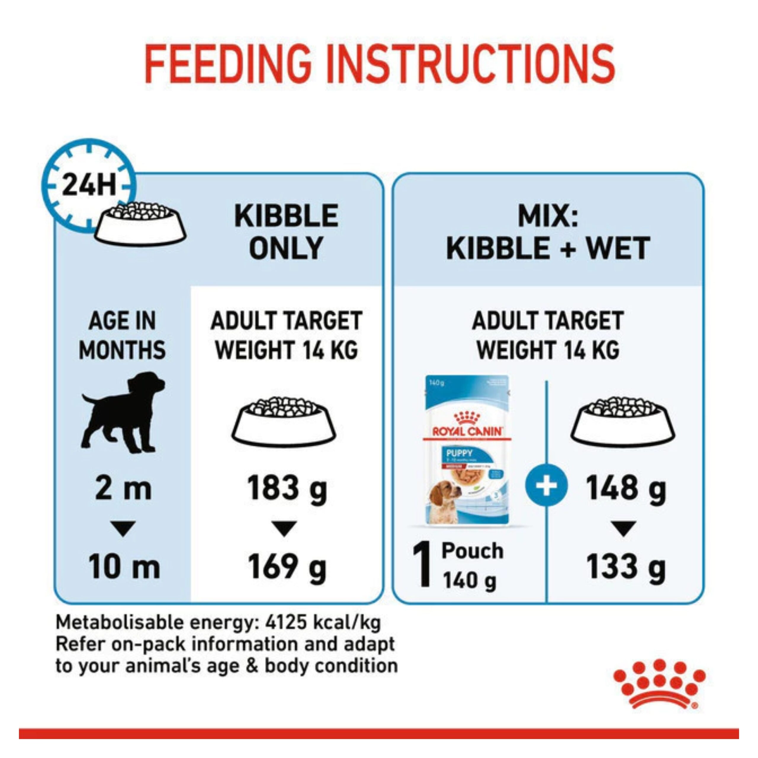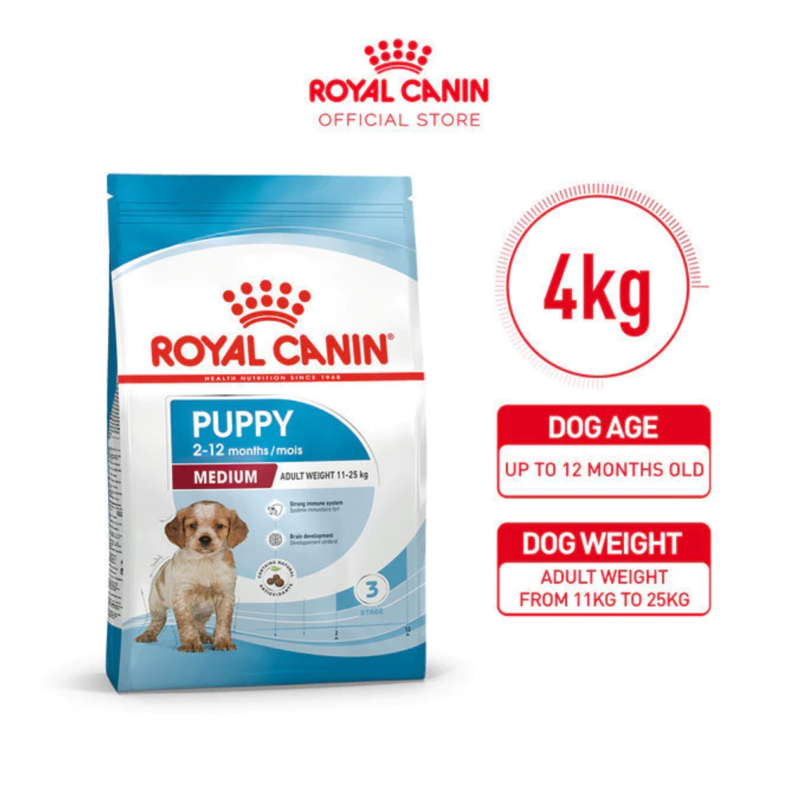 Royal canin medium puppy makanan kering yang sesuai untuk anak anjing ras sedang berusia 2 sampai 12 bulan yang akan mencapai berat dewasa 11-25 kg. Royal canin mengandung kadar protein tinggi yang dapat mendukung pertumbuhan otot serta tulang sehat. Berbagai kombinasi nutrisi seperti probiotik dan protein dapat membantu menjaga kesehatan pencernaan anak anjing.