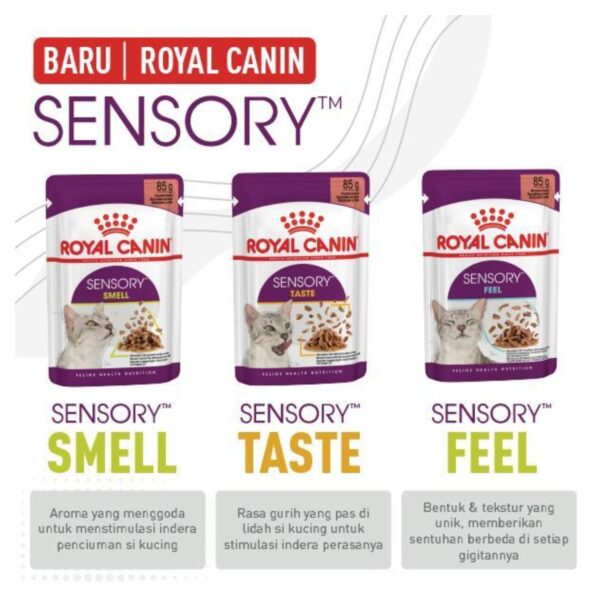 Kesejahteraan kucing meningkat ketika pola makan mereka diberikan variasi sensorial. ROYAL CANIN SENSORY membantu merangsang indera kucing dan meningkatkan pengalaman makan mereka.