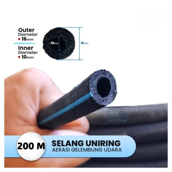 Selang Uniring 10/16mm merupakan Aeration Tube/Uniring yang biasanya dikenal juga sebagai selang gelembung udara. Selang yang mampu mengeluarkan gelembung-gelembung udara seperti halnya batu gelembung.