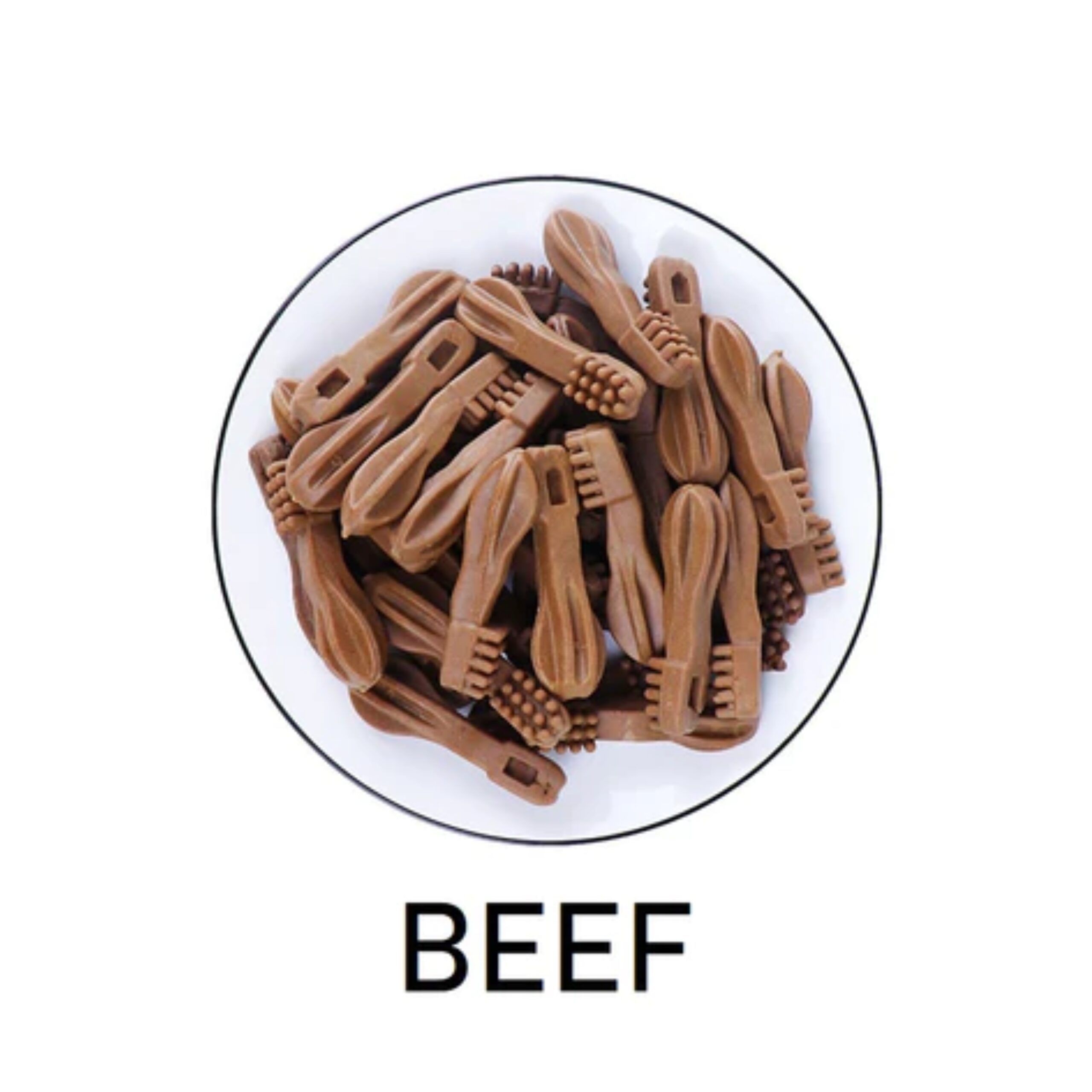 Snack Fungsional untuk membersihkan gigi anjing karena desainnya yang unik dapat menjangkau seluruh permukaan gigi anjing saat digigit. Aman digunakan setiap hari sebagai snack sehat untuk anjing.