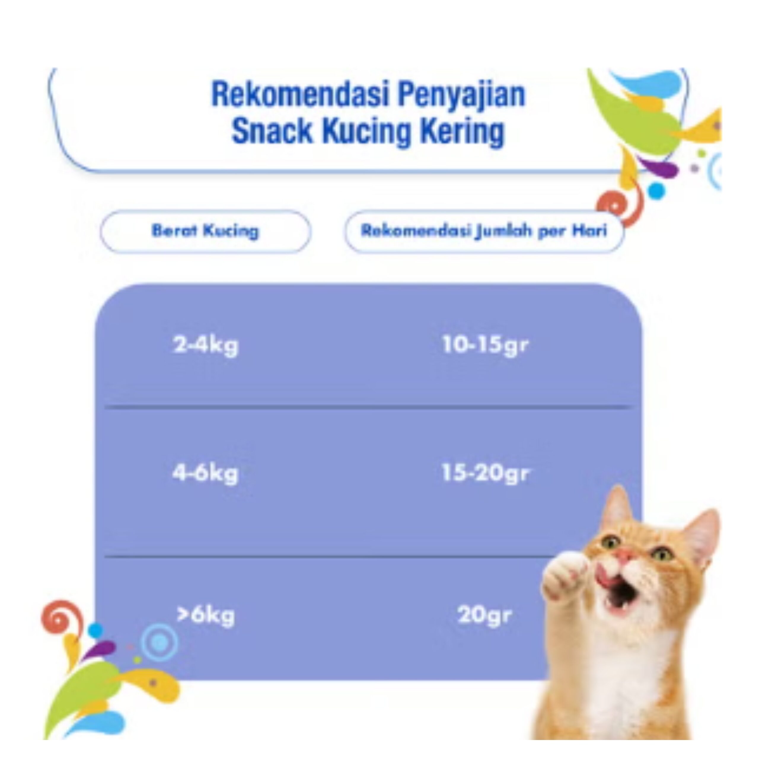 – Bentuk yang Menyenangkan: Kibble dengan bentuk yang unik dan warna-warni, memberikan stimulasi visual dan memperkaya pengalaman makan kucing.