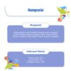 Komposisi: Sereal gandum utuh, Produk samping sereal: daging, Produk samping daging (unggas ikan), Minyak nabati, Vitamin, Mineral, Asam amino, Perasa, Pewarna Makanan,