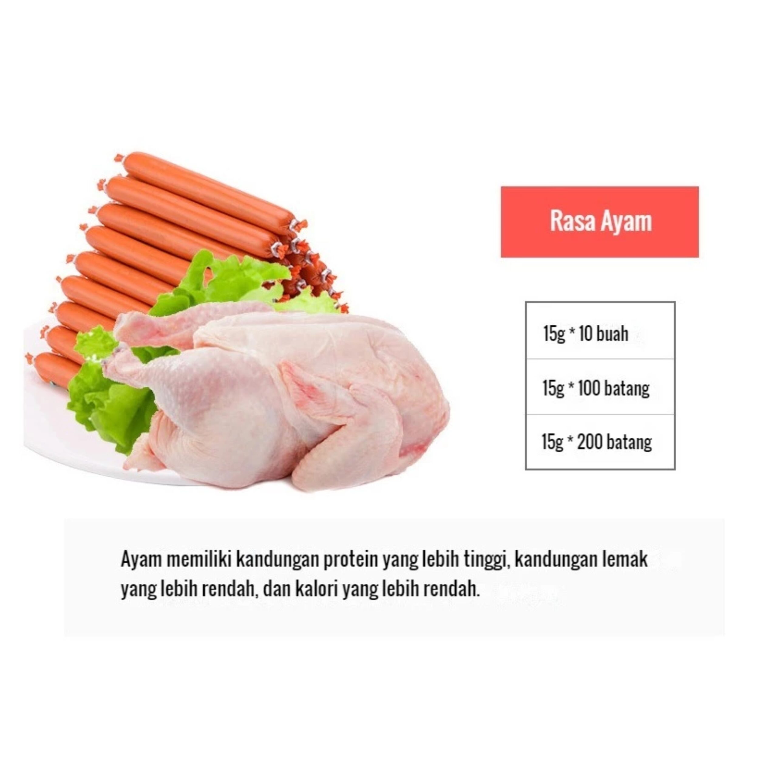 – Berat per sosis: 15 gram