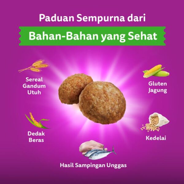 Bahan-bahan kami dipilih untuk menyediakan makanan bergizi dan lezat untuk kucing dewasa Anda.