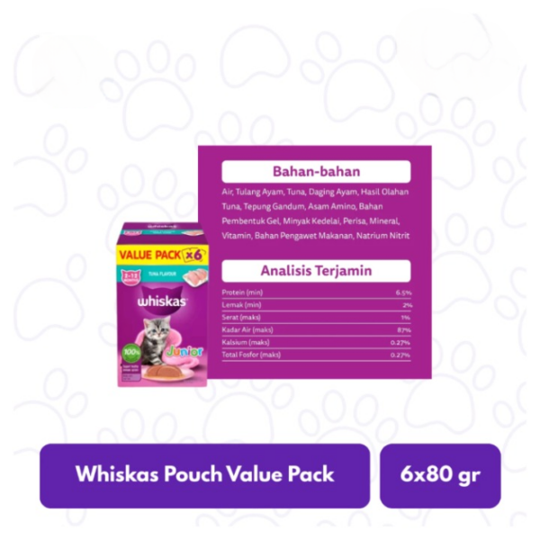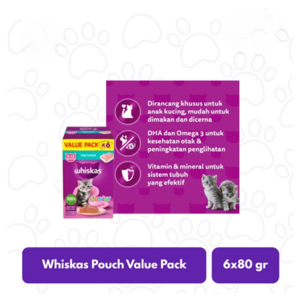 Whiskas Pouch VALUE PACK Adult Mackerel Paket Hemat isi 6 x 80gr Sachet Makanan Basah